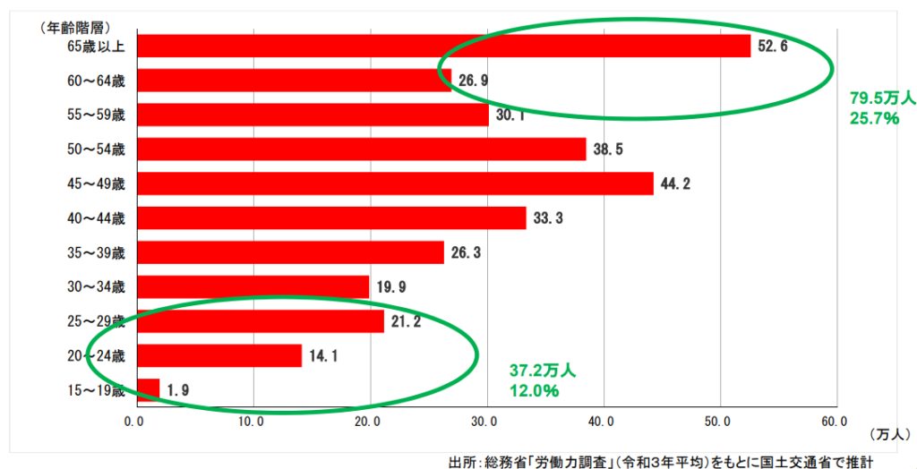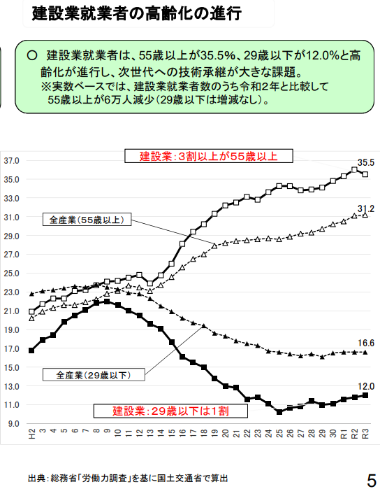 国土交通省のデータによると、建設業界は深刻な労働力危機に直面しています。