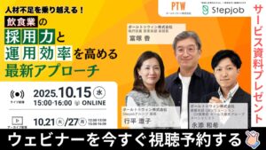 2025年10月15日(水)無料ウェビナー開催のお知らせ『飲食業の採用力と運営効率を高める最新アプローチ』