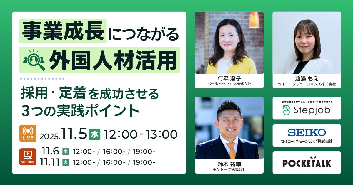 【共催ウェビナー】事業成長につながる外国人材活用 ― 採用・定着を成功させる3つの実践ポイント